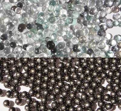 Esferas de vidro: Indicado em processos de polimento de peças com baixa dureza, como ligas de estanho e chumbo.